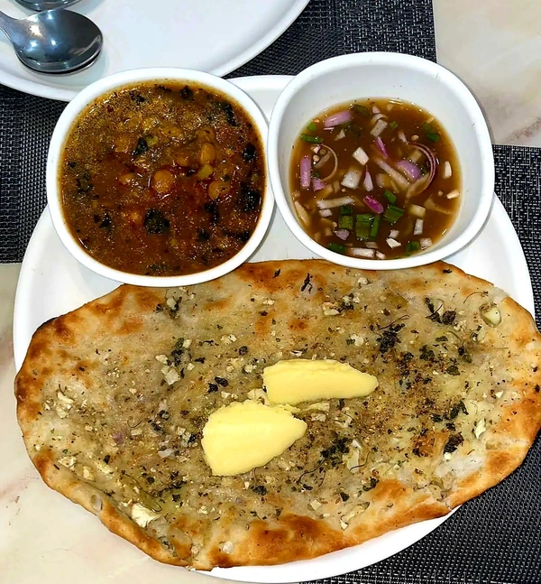2Pcs aloo kulcha butter , with serve chole and chutney pyaj
